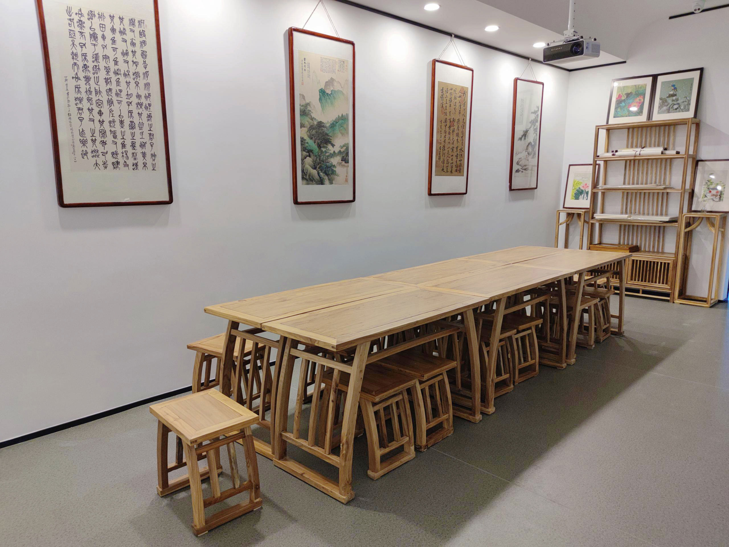 漪汾校区 习墨去·文也漪汾校区位于万柏林区环西网西巷恒大滨河左岸2幢底商,校区占地面积达到300平方米,能同时容纳四五十个学生一起上课。而且校区配有专业的教师团队和完善的教学设施,教室宽敞明亮,教学环境优美,致力为广大书法爱好者提供最优的学习平台。 校区风采